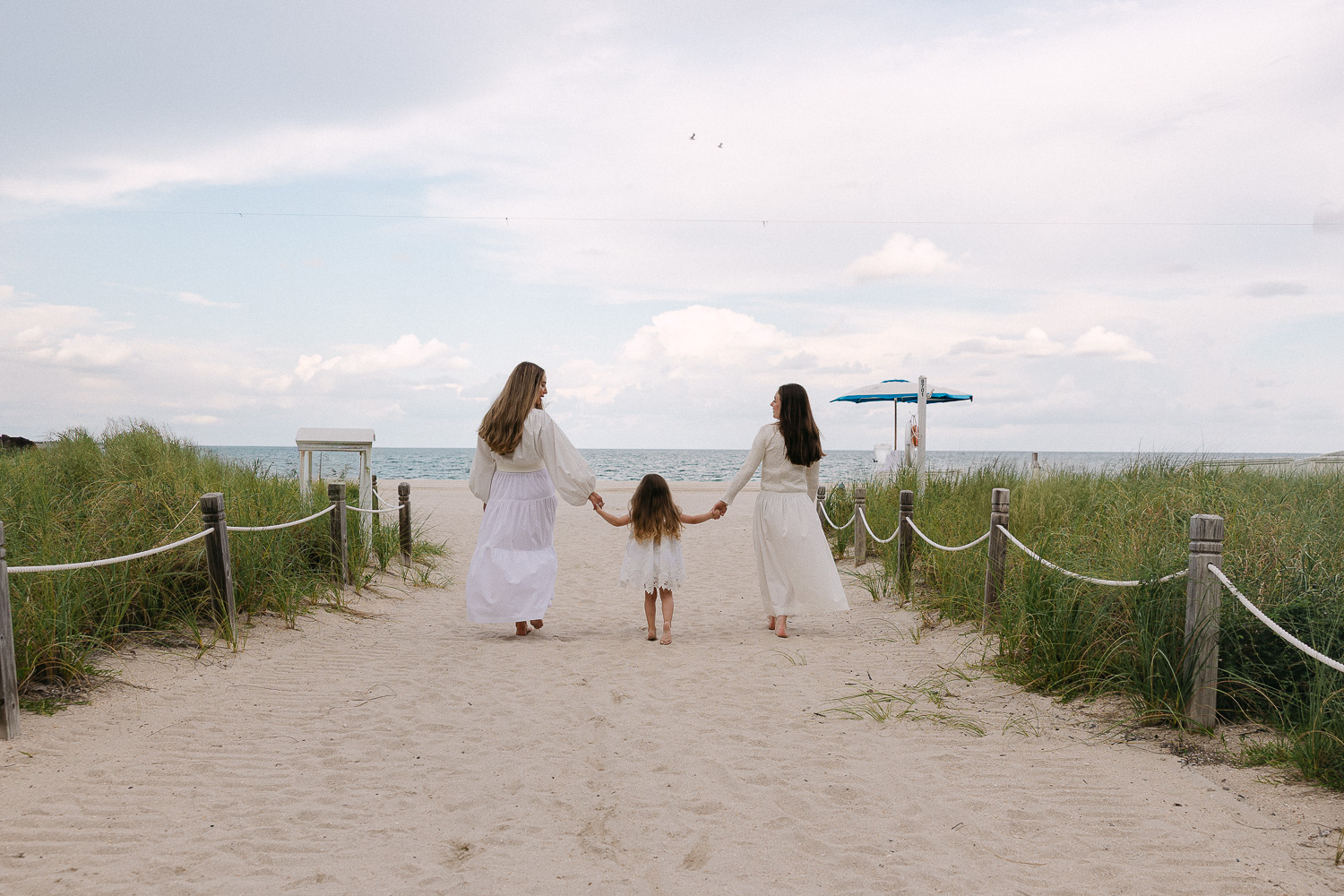 The resort itself is a dream location for family photos. With its private beach access, you don’t have to worry about crowds or onlookers—just the serene backdrop of the Atlantic Ocean. The path leading from the resort to the sand is lined with lush greenery and soft beach grass, creating an inviting transition to the oceanfront. Once you arrive on the beach, the view opens up to rows of cabanas and chairs facing the horizon, setting a tranquil, intimate scene for photos.